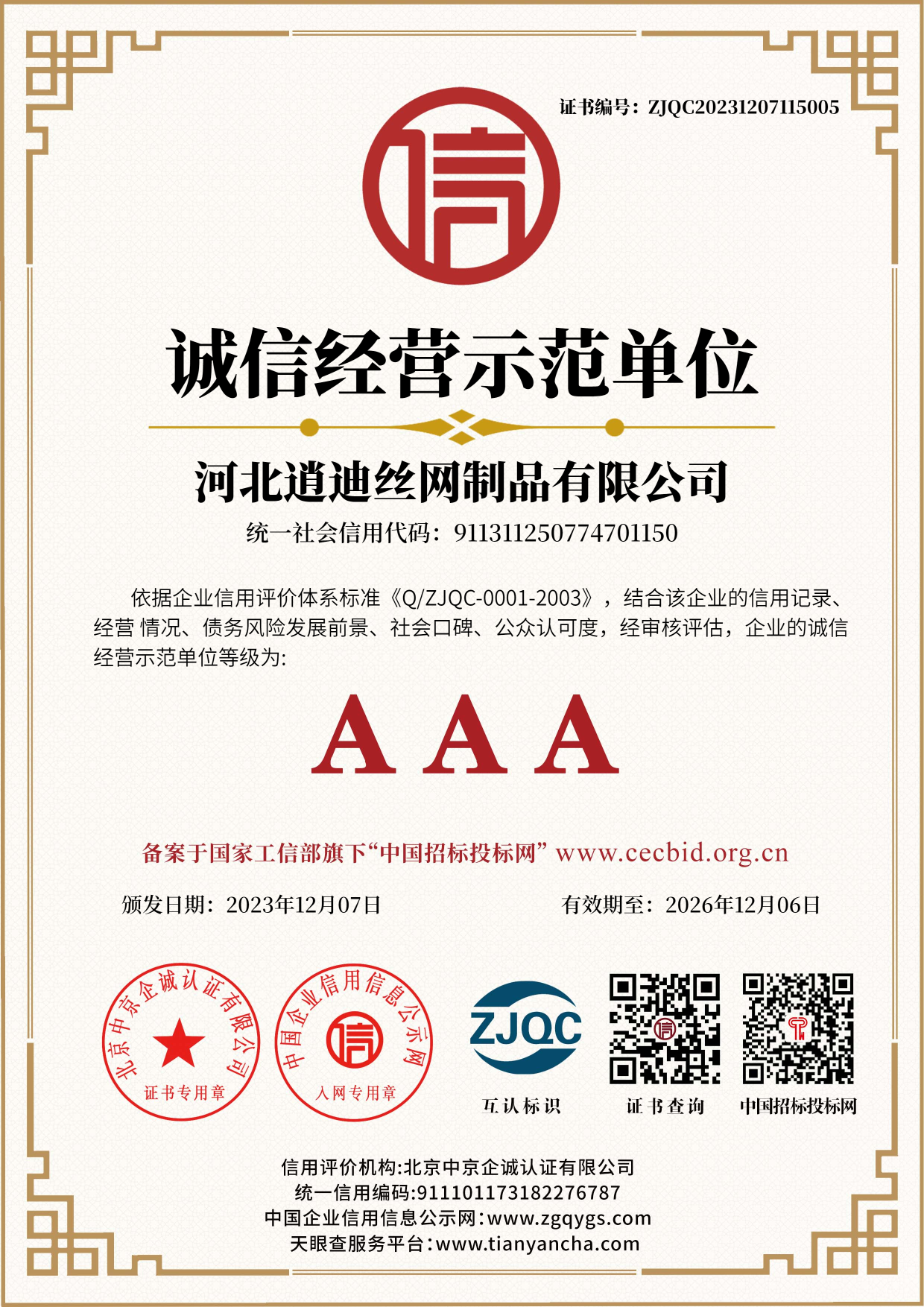 河北逍迪絲網制品有限公司誠信天下,誠信是我們公司一個原則問題不可撼動的,以心中有誠信的思想結交五湖四海的朋友,能達到雙贏是最好的,我們堅信朋友多了路好走,我們公司都是老朋友多,我們一直是這樣做的。河北逍迪絲網制品有限公司成立于2013年注冊資本壹仟伍佰萬整,主要生產沖孔網,鋼格板,金屬防蟲網,如實的實體廠家,是一家-研發(fā)-銷售-生產-安裝-售后一條龍公司,2019年通過了ISO 9001認證管理體系符合GB/T 19001-2016/ISO 9001:2015標準,同時通過了SGS認證,擁有商標版權2品牌,擁有一個著作版權,河北逍迪絲網制品有限公司位于中國有名的(絲網之鄉)安平縣,于天津,北京,雄安,石家莊相鄰,交通非常發(fā)達,出口可以選擇天津港口非常近每天都有接貨送貨往返車輛,空運可以選擇石家莊正定機場,附近也有鐵路運輸,當地還有兩個生態(tài)物流園區(qū)發(fā)往全國各地,我們沖孔網工廠生產設備有:普通沖壓機,高速沖壓機,自主研發(fā)小微孔沖壓機,龍門沖,磚塔沖孔,重型沖孔機,萬瓦級別激光切割機,3000W激光切割機,焊接設備,折彎機,校平機,剪板機,精密校平機,(對板面平整度要求苛刻的客戶群體0.5-0.2誤差)我們公司銷售市場沒有局限性國內國外都供應,擁有出口權...